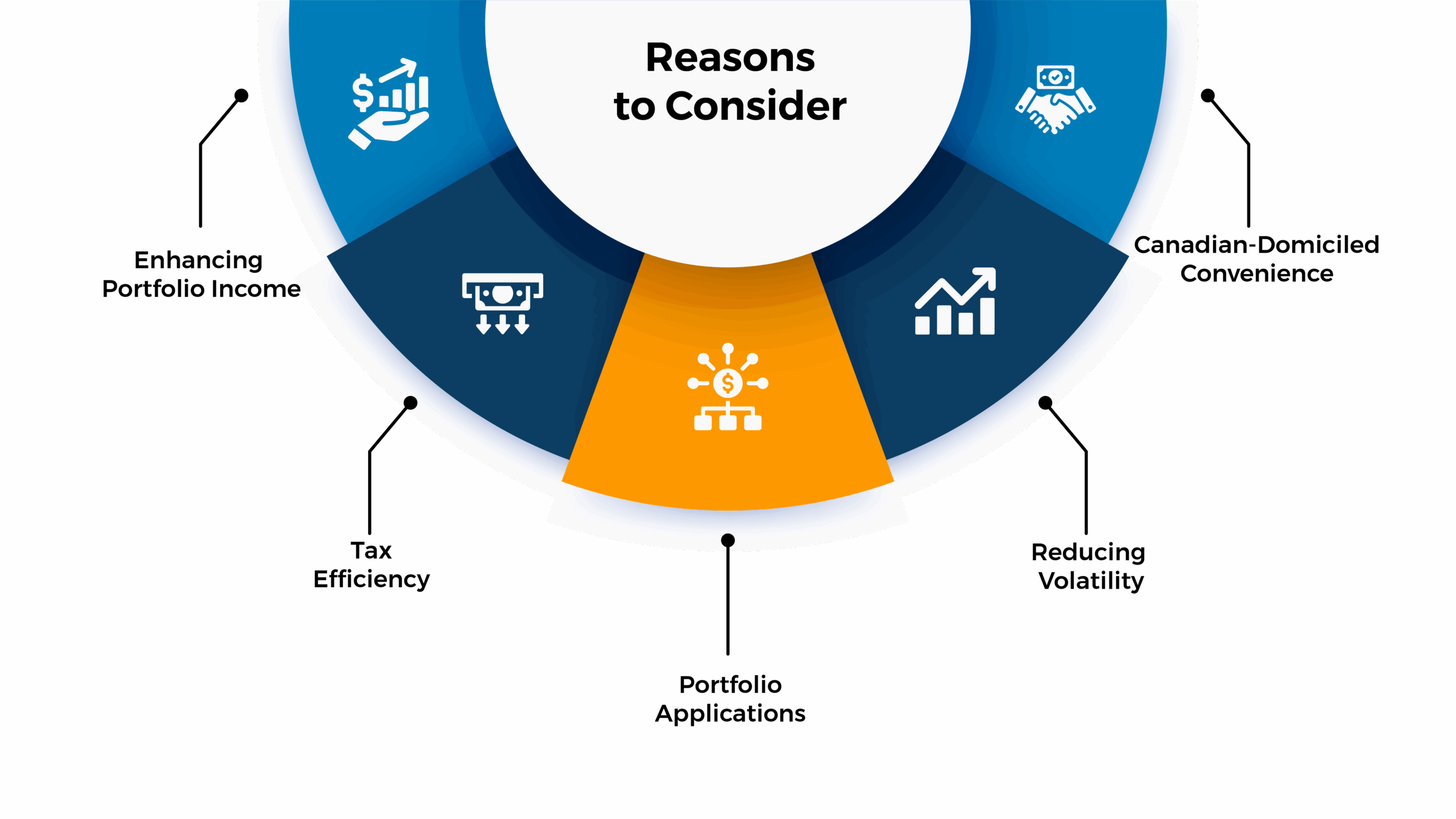 Pour les investisseurs canadiens, les revenus provenant des options d’achat couvertes sont généralement traités comme des gains en capital. Les gains en capital sont plus avantageux sur le plan fiscal que les revenus d’intérêts ou les dividendes admissibles dans les comptes non enregistrés. Cela offre un avantage pour la planification fiscale stratégique afin d’optimiser les portefeuilles et d’améliorer les rendements après impôts. Les ETF Harvest High Income Shares sont des alternatives axées sur le revenu et potentiellement moins volatiles à la détention directe d'actions pour les comptes fiscalement avantageux.