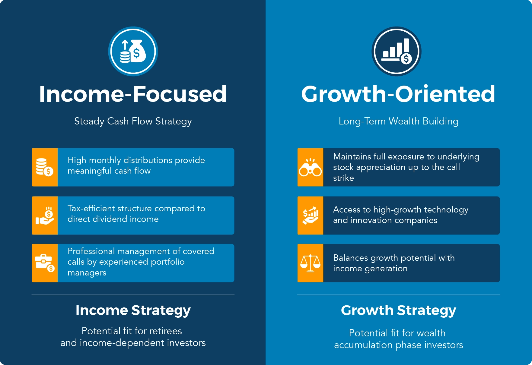 - Atténuation des risques | Une stratégie d'appel couvert gérée activement offrant une mesure de protection contre la baisse grâce à un flux de trésorerie mensuel qui peut également réduire la volatilité du marché