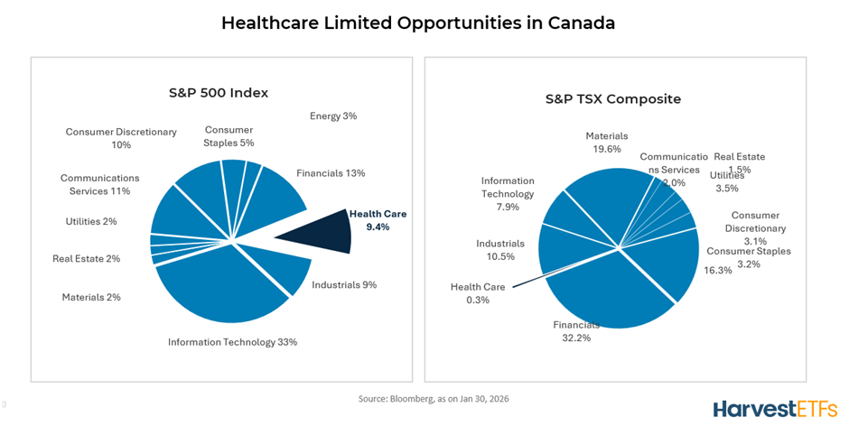 Harvest ETFs adopte une approche pragmatique, en se concentrant sur les leaders établis du secteur de la santé plutôt que sur les petites capitalisations biotechnologiques plus spéculatives ou les entreprises périphériques « adjacentes à la santé ».